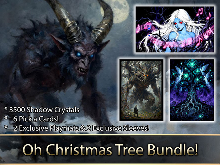 * Exclusive, limited time FOIL playmat and sleeve featuring a magical Christmas Tree, and a Dryad Siren singing the Song of the Shadows!