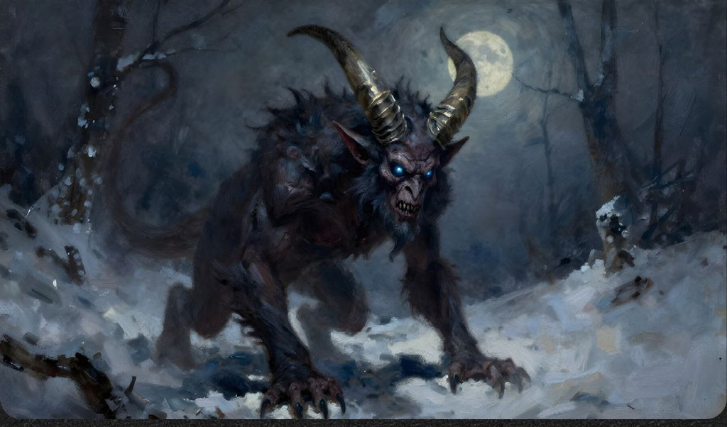 * PLUS, a bonus FOIL playmat and sleeve featuring a lurking Krampus and a Christmas Tree who got a little wrestless.